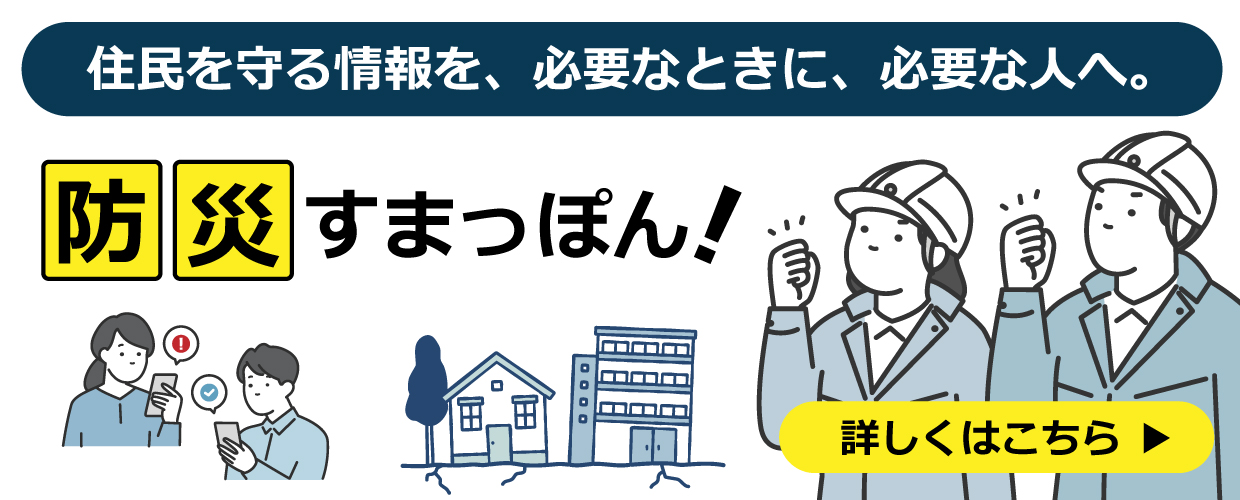 自治体関係者の皆さまに、より分かりやすく情報をお届けできるよう、「防災すまっぽん!」のウェブサイトをリニューアルしました。今回のリニューアルでは、自治体での導入を検討される方に向けて、 サービスの内容や導入のしやすさが伝わりやすい構成へ見直しました。特に、以下...